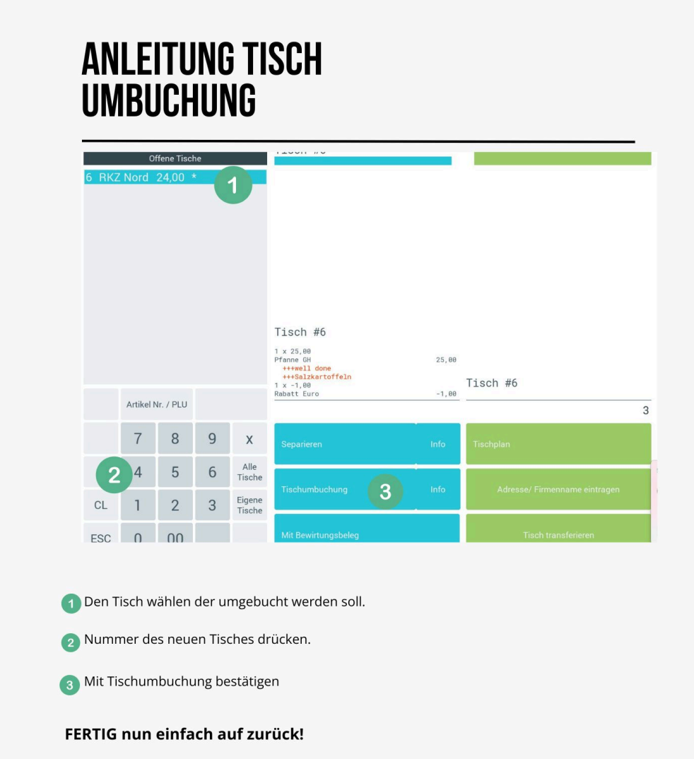 Falls ein Tisch blockiert ist können Sie diese/n über die Masterkasse manuell freigeben. ⚠️ WICHTIG: Nur Masterkasse: Führen Sie diese Aktion ausnahmslos an der Hauptkasse (Master) aus. Buchungsstopp: Stellen Sie sicher, dass währenddessen niemand an ...